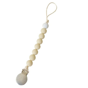 Attache-tétine perles de bois pour bébé - beige