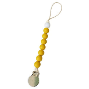 Attache-tétine perles de bois pour bébé - jaune