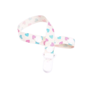 - Attache-tétine ruban ajustable pour bébé - blanc à coeur