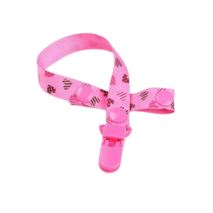 - Attache-tétine ruban ajustable pour bébé - rose à coeur