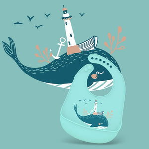 Bavoir ajustable et imperméable avec image d'animaux - vert baleine