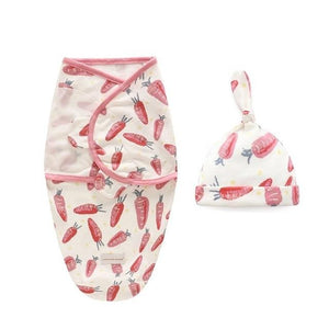 Sac de couchage emmaillotage bébé et son bonnet - carotte