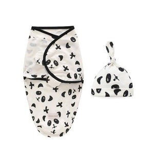 Sac de couchage emmaillotage bébé et son bonnet - blanc motifs panda