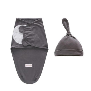 Sac de couchage emmaillotage bébé et son bonnet - gris