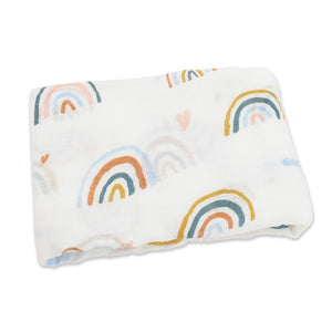- Couverture en mousseline 100% coton (120cm x 120 cm) - arc en ciel