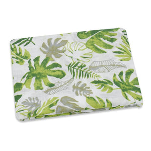 - Couverture en mousseline 100% coton (120cm x 120 cm) - feuilles vertes