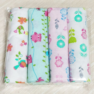 Lots de 4 couvertures en mousseline 100% coton (76cm x 76cm) - blanc à fleurs