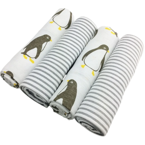 Lots de 4 couvertures en mousseline 100% coton (76cm x 76cm) - blanc rayures pingouin