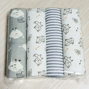Lots de 4 couvertures en mousseline 100% coton (76cm x 76cm) - gris blanc bleu à motifs