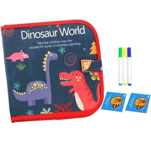 - Livre de planches à dessin à craie souple - motif dinosaure rouge - 6 pages/3 craies
