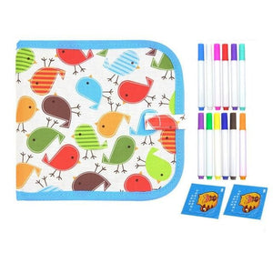 Livre de planches à dessin à craie souple - motif oiseaux - 14 pages/12 craies