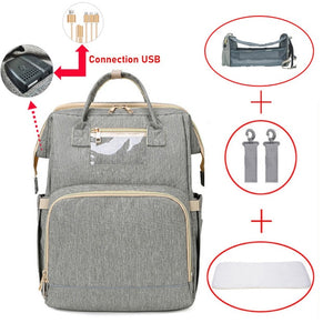 Sac à langer pour bébé avec matelas à langer - gris USB
