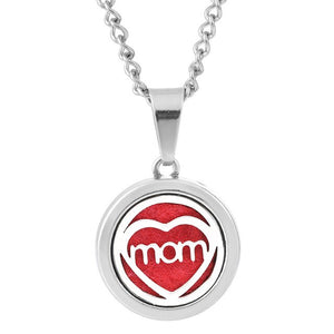 - Collier pendentif diffuseur d'huiles essentielles (longueur chaine: 55cm + 2.5cm) - coeur "mom"