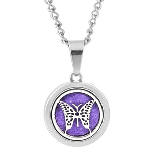 - Collier pendentif diffuseur d'huiles essentielles (longueur chaine: 55cm + 2.5cm) - papillon fou