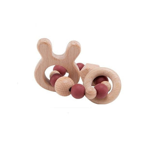 Anneau de dentition en bois et crochet - lapin marron