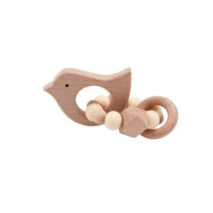 Anneau de dentition en bois et crochet - oiseau crème