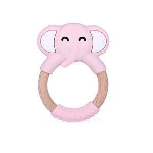 - Anneau de dentition en Silicone/Bois sans BPA - éléphant rose