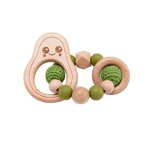 - Lots de 2 anneaux de dentition en bois et crochet - avocat
