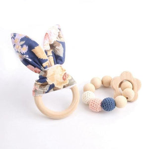 Lots de 2 anneaux de dentition en bois et crochet - oreille de lapin bleu foncé