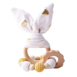 - Lots de 2 anneaux de dentition en boiset crochet - oreille de lapin en or blanc