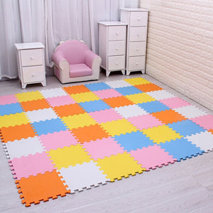 - Puzzle Tapis en mousse pour bébé - jaune orange rose bleu blanc