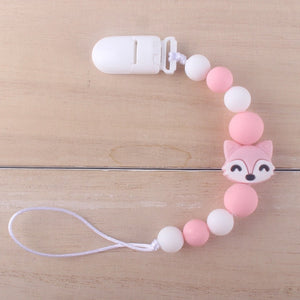 Attache-tétine en Silicone sans BPA avec charme animal - chat rose