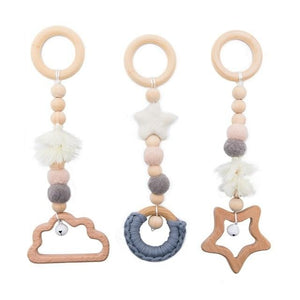 Les suspensions pour portique offre la possibilité à bébé qui ne sait pas encore s'asseoir de jouer, s'éveiller et se familiariser avec ses premières sensations de toucher mais aussi auditives, les figurines se choquent et s'entrechoquent et cela plait généralement beaucoup à bébé.