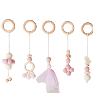 Les suspensions pour portique offre la possibilité à bébé qui ne sait pas encore s'asseoir de jouer, s'éveiller et se familiariser avec ses premières sensations de toucher mais aussi auditives, les figurines se choquent et s'entrechoquent et cela plait généralement beaucoup à bébé.