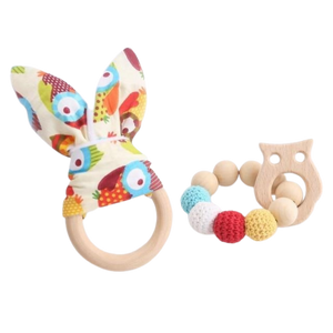 Lots de 2 anneaux de dentition en bois et crochet - oreille de lapin multicolore
